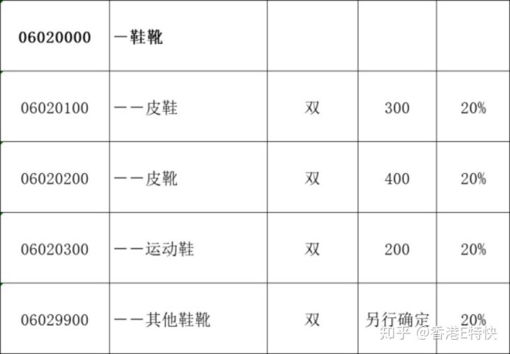 我們看看完稅價(jià)格表,我們網(wǎng)站價(jià)格板塊都有完稅價(jià)格下載鏈接,完整excel表格可以自助下載。下面我們以鞋子為例,給大家大概講解一下。